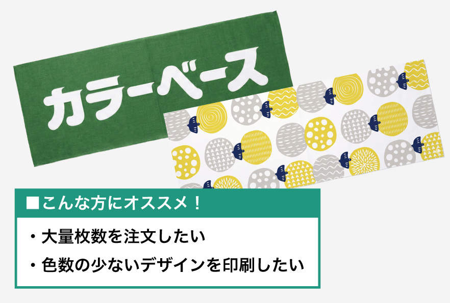・1色〜3色(白除く):顔料印刷 ・フルカラー:反応インクジェット |